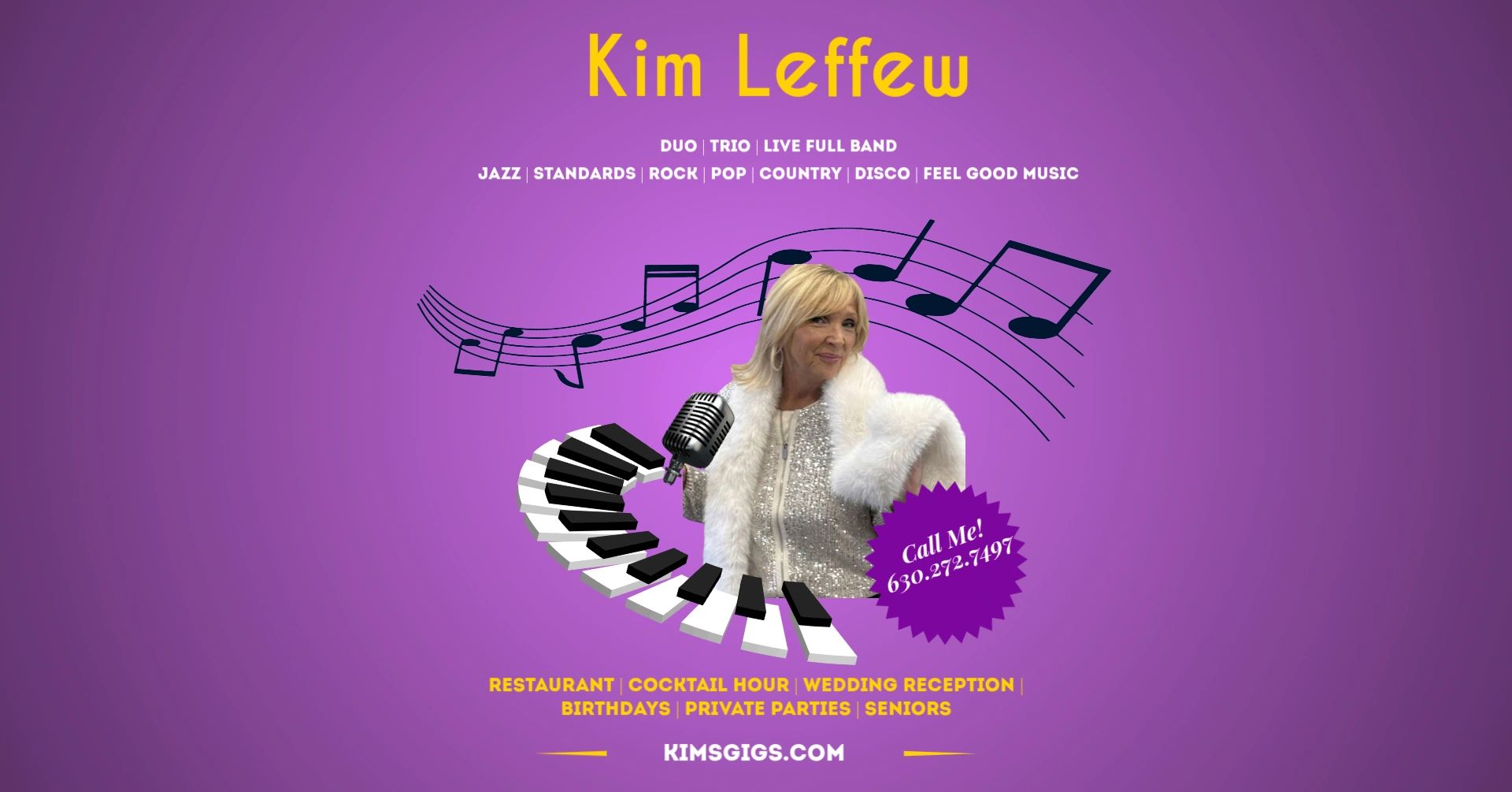 Kim Leffew is a captivating vocalist and performer known for her warm tone, expressive phrasing, and deep connection to the many genres of music from timeless spirit of jazz, classic standards, disco, pop, country and her favorite-crooning. With a style that blends elegance, soul, and a touch of playful charm, she brings each song to life—inviting audiences into an intimate musical experience or a lively group dance party. Whether performing beloved favorites or uncovering hidden gems, Kim’s artistry reflects a genuine love of creating performances that linger in the heart long after the final note.